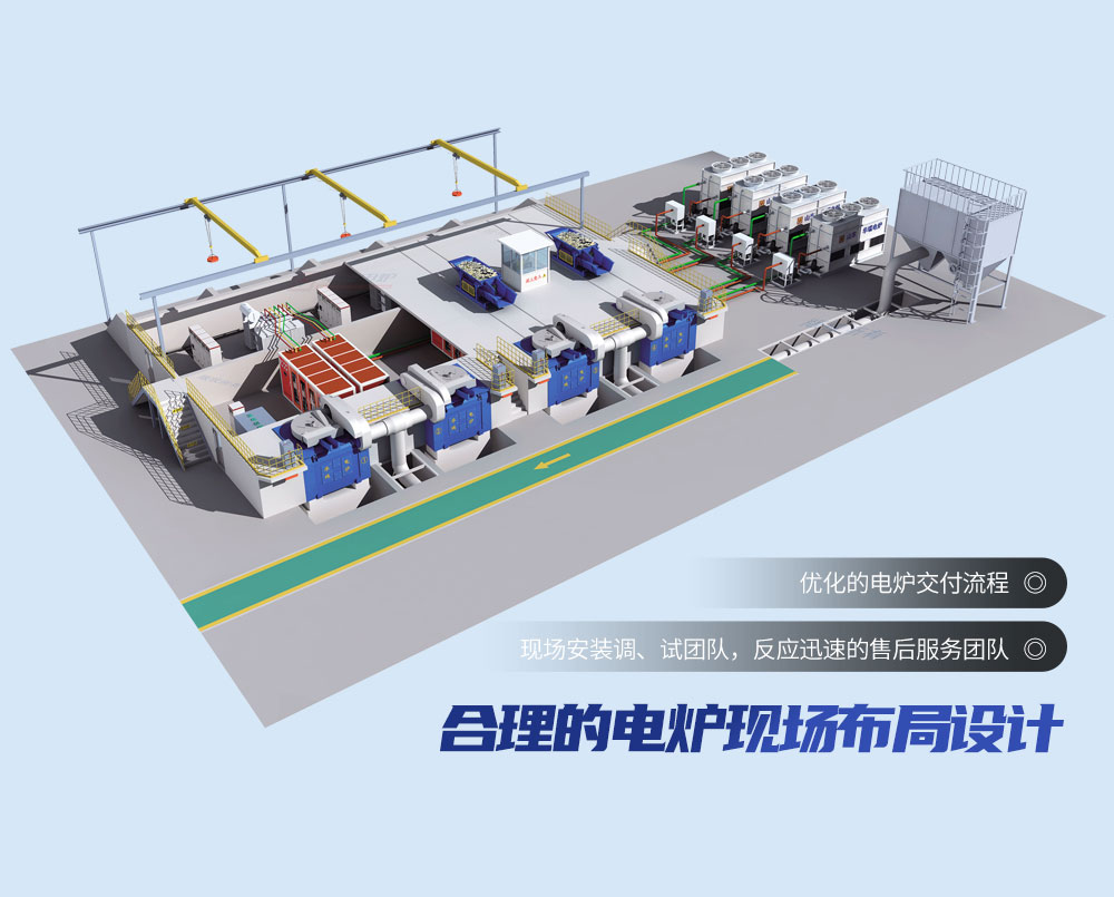 電源柜元器件布置規(guī)范合理,維修人員能很輕易地接觸到所有維修點(diǎn);開放式的電爐結(jié)構(gòu)設(shè)計(jì),易于設(shè)備維護(hù)。